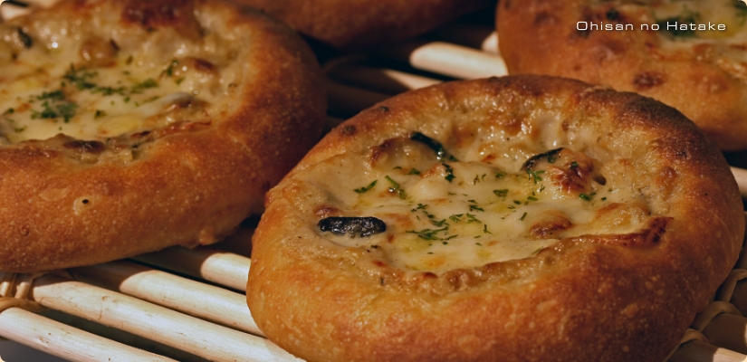 石臼挽き小麦を多く配合し、低温で長時間発酵させた生地に、自家栽培のシイタケと大根たっぷりのグラタンを乗せ、さらにゴーダチーズをかけて焼いたハードパン。ピザのように底はカリッと、縁はもっちり。大根の甘みとぷりぷりのシイタケ、隠し味の燻製が香るグラタンとの調和をお楽しみください。